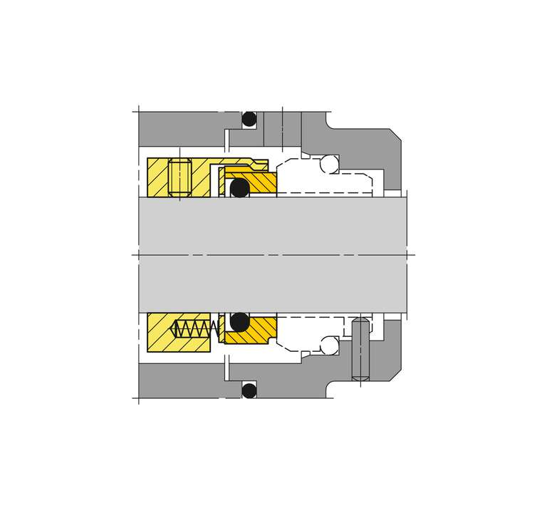 Maße, Positionen und Benennung wie M7N. Ausführung des Gleitrings speziell für Nebendichtung aus massivem PTFE T).