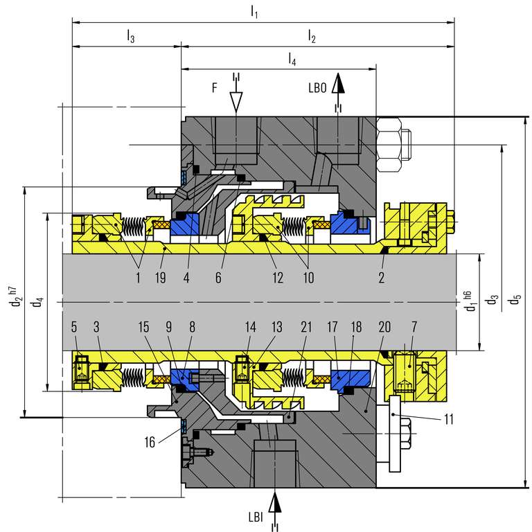 • Dichtung nach API 682 Category 2 und 3, Type B, Arrangement 2 und 3