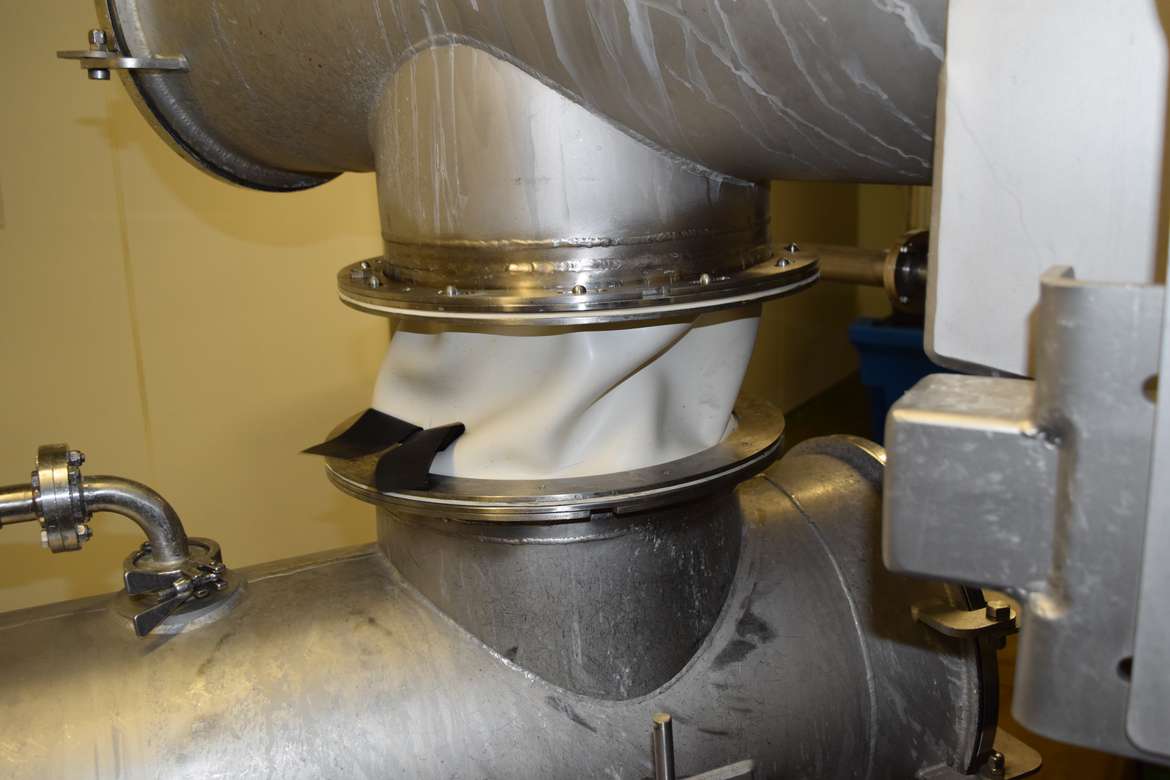 Die abrasive Belastung durch den Laktosebrei und die mechanische Belastung durch die Vibrationen des Rüttlers führten außerdem zu einem schnellen Verschleiß der Kompensatoren. Während die Druckanforderungen bei dieser Anwendung gering sind, müssen die Kompensatoren bei Reinigungsarbeiten mit Säure Temperaturen bis 65 °C und bei Reinigungsarbeiten mit Wasser Temperaturen von 80 °C standhalten. Die Standzeit der Kompensatoren betrug nur wenige Monate, danach war ein Austausch nötig.